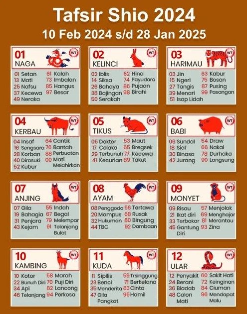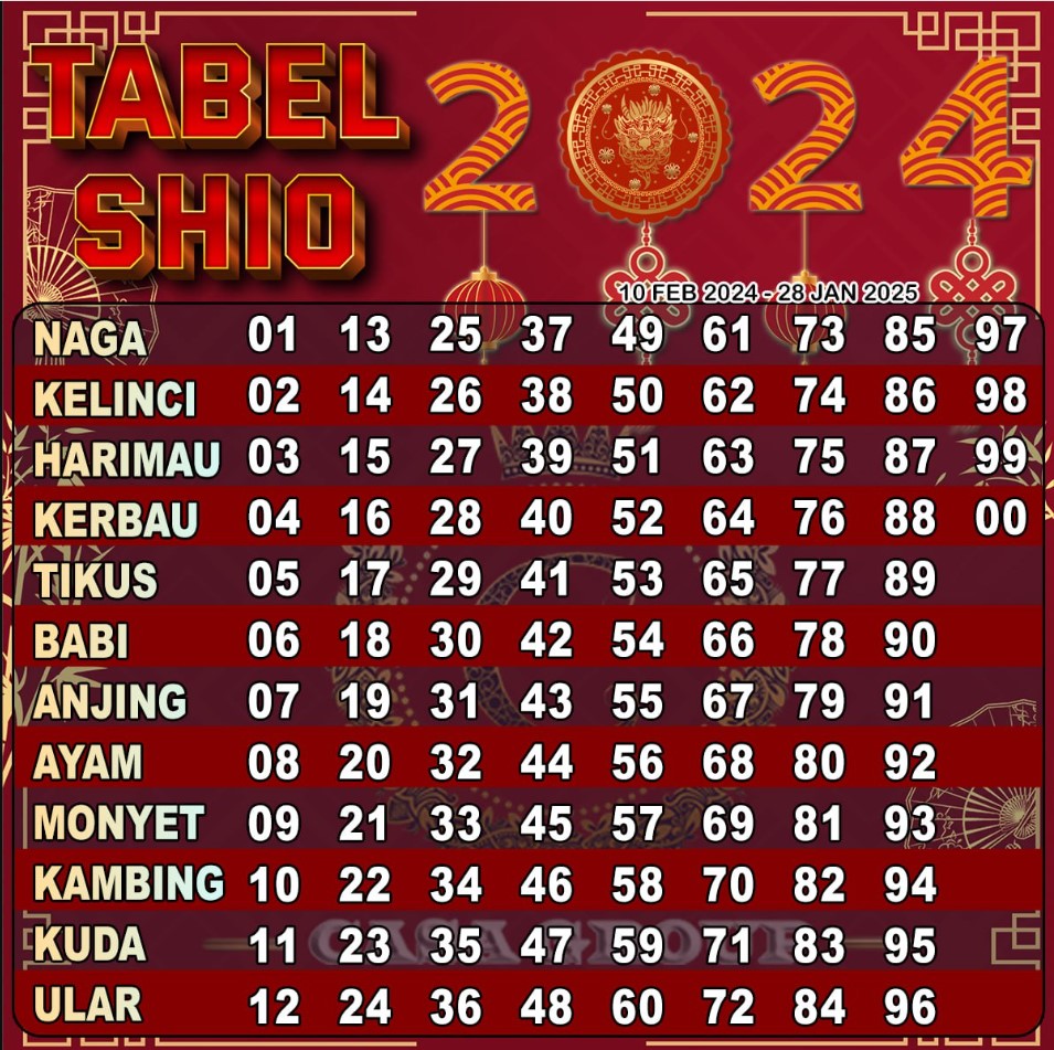 Gambar Tabel Shio 2024 Beserta Angka Main Shio
